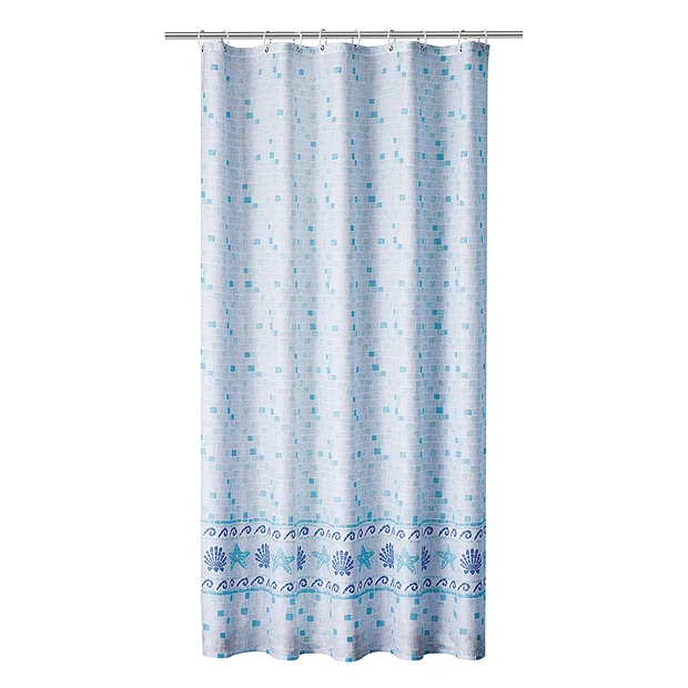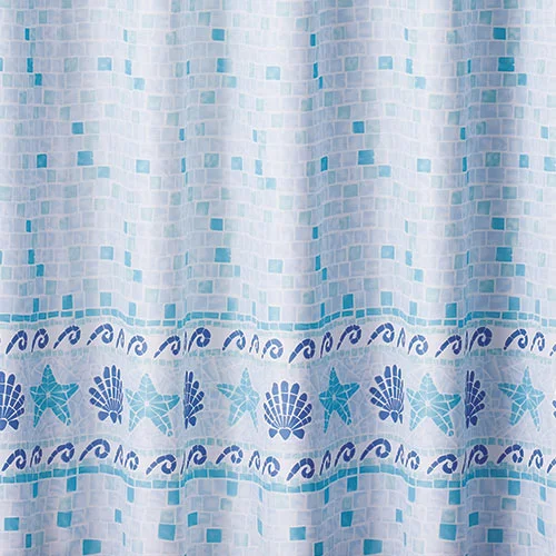Prevent water from splashing from the shower area with the Mosaic Blue Polyester Shower Curtain from Aqualona. This quality curtain features a mosaic print design and is made from 100% polyester that is mildew resistant. The curtain also features nickel plated eyelets to prevent rusting and a weighted hem to ensure it hangs neatly in place. Suitable for machine washing.