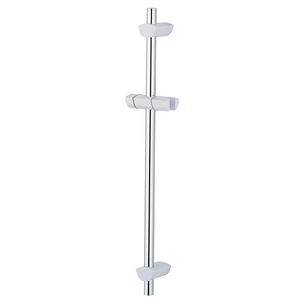 Complete your showering system with the stylish EVO Riser Rail with Adjustable Fixing Brackets. The brackets can be positioned up or down the riser rail as required. This allows any existing holes to be reused or covered by the wall brackets. The brackets can also be adjusted to sit in the middle of the tiles or in the tile joints. Finished in chrome with white brackets. Comes with a 5 year guarantee covering manufacturing faults.