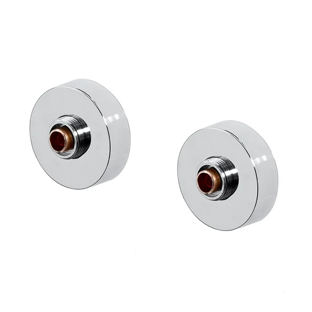 The Bristan wall mount fixing kit is the perfect compliment to installing any bar shower valve or wall mounted bath shower mixer tap that connects with 3/4″ BSP threads. Made from brass with copper olives and ABS chrome plated cover shrouds. The wall mount design allows the pipes to be left and capped off during the tiling stage, and then the brackets are fitted onto the finished tiled surface. Once the pipework has been cut to length, the wall brackets simply screw to the tiles, and the olive compression joint to the 15mm pipework before the chrome plated cover shrouds are screwed on and the bar valve 3/4″ nuts are screwed at the final stage of installation.