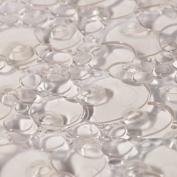 This non-slip 700 x 350mm Bubbles vinyl bath mat from Croydex, inspired by soothing showers and overflowing bubbles, greatly enhances safety.