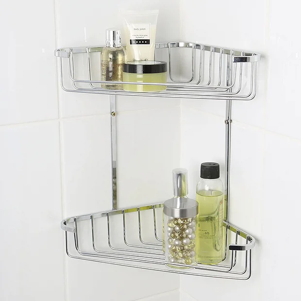 This Croydex two tier corner basket can be easily screwed to the wall for instant shower organisation. Perfect for showers of any size, this streamlined solution makes the most of otherwise unused space.Â