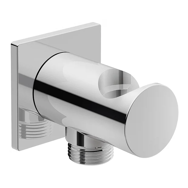 This stylish chrome square outlet elbow and handset holder from Duravit is ideal for concealed shower valves installations. The outlet elbow is suitable with most shower hoses and features a non-return valve in the hose connection.