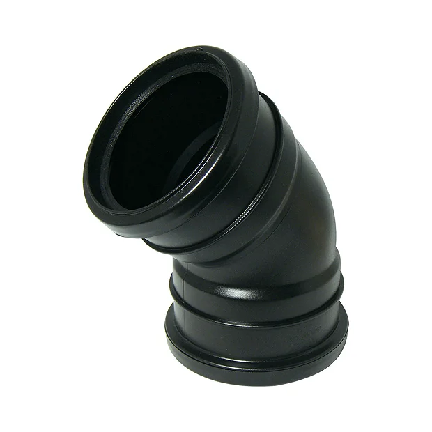 The FloPlast 110mm Black 135° Double Socket Bend is manufactured in PVC-U to give a strong and durable product, lightweight and easy to work with and suitable for high temperature waste discharge. Fittings have an aesthetic modern look, are compact in size yet remain within the British Standard specification.