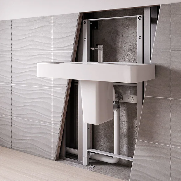 The Ideal Standard Prosys washbasin frame is for use with selected wall mounted washbasins using deck mounted taps. It can be installated in front of a solid wall or between two light plasterboard walls. Comprises of basin fixing hardware, frame fastening materials, outlet bend, 2 pcs G ½ fittings for water connection.