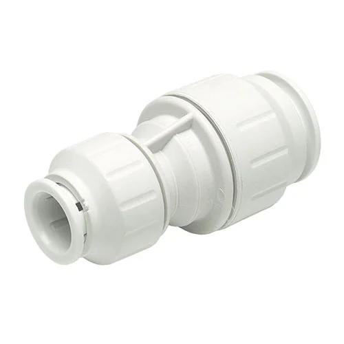 A JG Speedfit 22mm x 15mm Reducing Coupler with push-fit and demountable connections. Suitable for use with plastic and copper pipe.