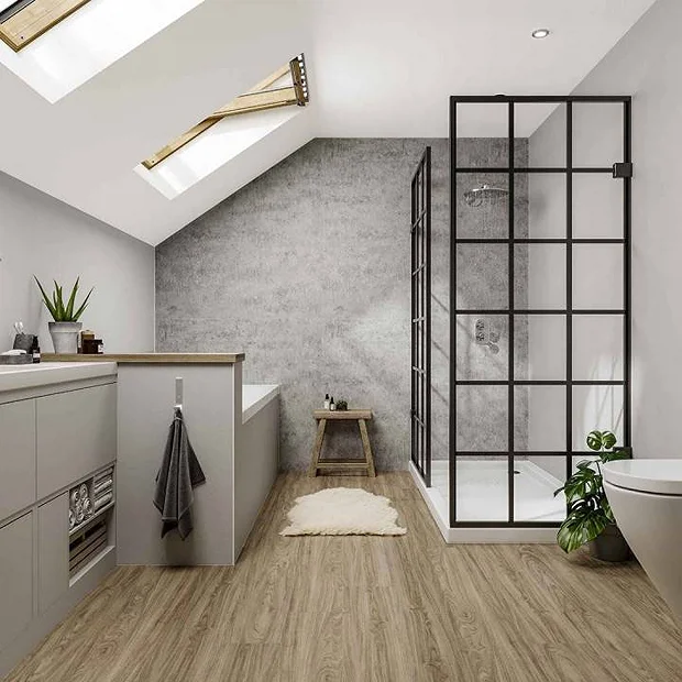 From Multipanel the leaders in bathroom wall panels, Pebble Grey from the Neutrals collection creates a perfect partner for feature panels with grey accents from the Classic, Heritage and Linda Barker collections. So much more practical than tiles, with no grout to maintain and discolour. Multipanel are changing the way we decorate bathrooms forever. Â