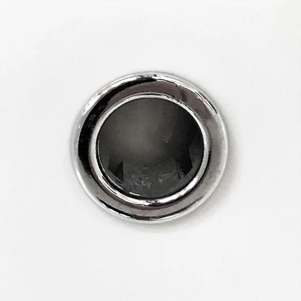 A standard 25mm replacement overflow cap, manufactured from chrome ABS plastic.