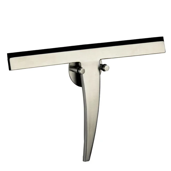 High-grade, heavy quality, brushed finish bathroom squeegee. Streak-free wiping of smooth surfaces like mirrors, shower cabins and wall tiles. With self adhesive wall fixture.