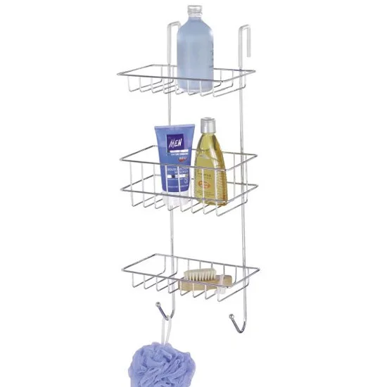 - Shower shelf chrome with 3 tiers and two hooks for shower sponges etc.